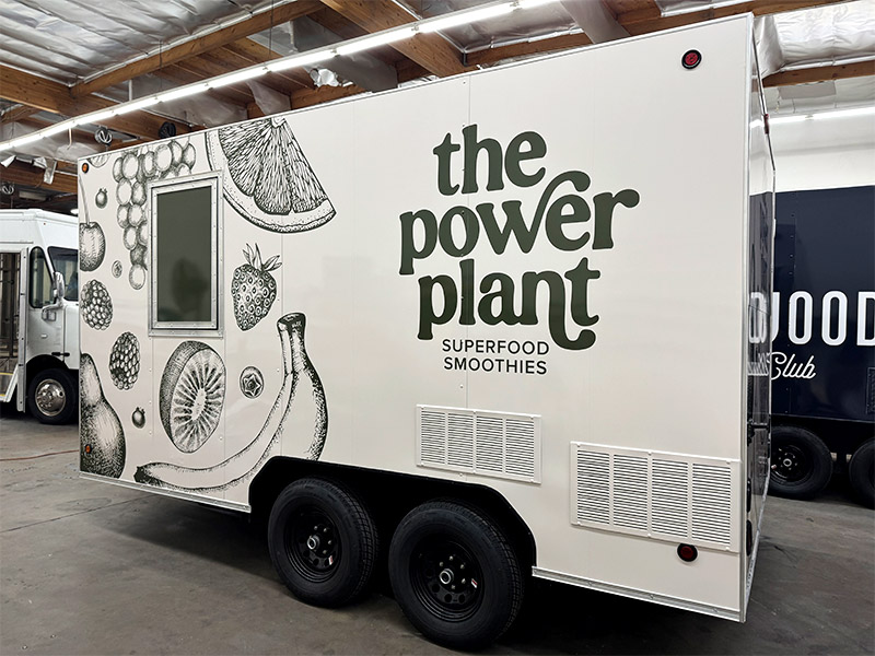 The 3 Geeks are back. The demand is high, one food truck is not enough. Our Client requested the exact same copy of the first truck we already built for him and that’s what we did. It’s equipped with a Turbo Air Fridge and a Turbo Air Freezer. The 48” Turbo Air Salad Bar keeps the toppings cold and three Frymaster Dean Fryers take care of the frying. The drinks are nice and cold in the Turbo Air Drink Cooler. This truck is equipped with the 36” Turbo Air Griddle. Onan Cummins generator was used to power all the electrical appliances. Two 29.3 Gallon LP Tanks make sure there’s always enough LP on board, even for events that might take few days. The electronic A/C unit with a remote control handles the warm days and the Custom Sound System entertains the customers waiting for their food. Three cameras are installed to keep an eye on the kitchen floor. Three compartment sink and the hand wash sink are standard. The water is being warmed up by a 6 Gallon LP Water Heater. Potable Water tank holds 50 Gallons of fresh water and the Waste water tank holds 80 Gallons. There were few minor changes in the color of the design and the logo is now lit up by two custom LED lights.